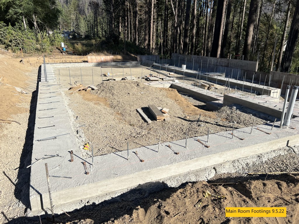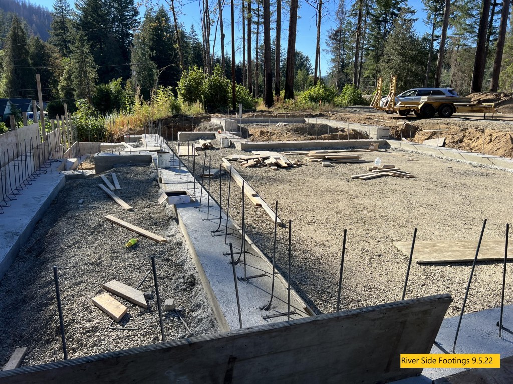 - The forming and pouring of the concrete footings with steel embeds is complete.