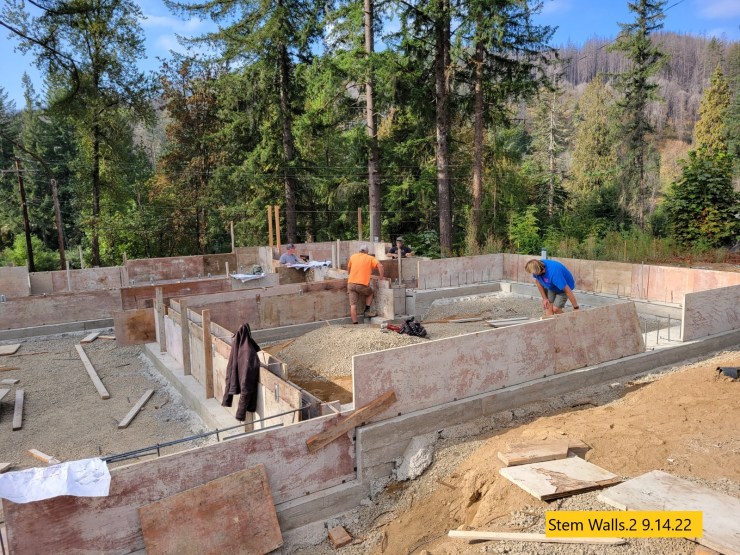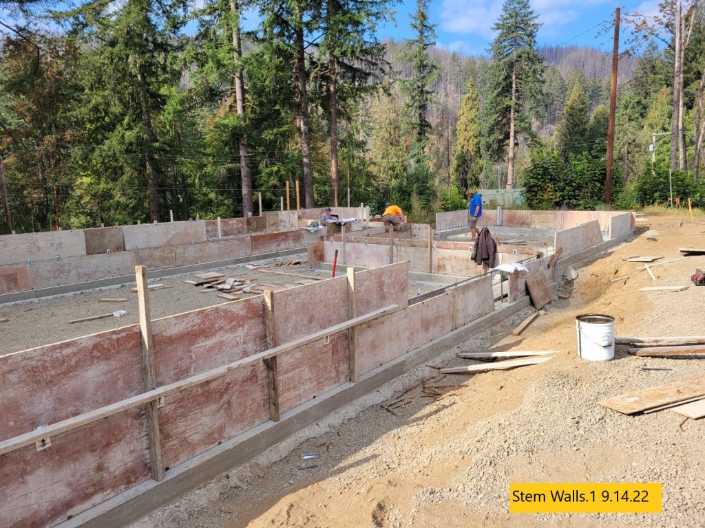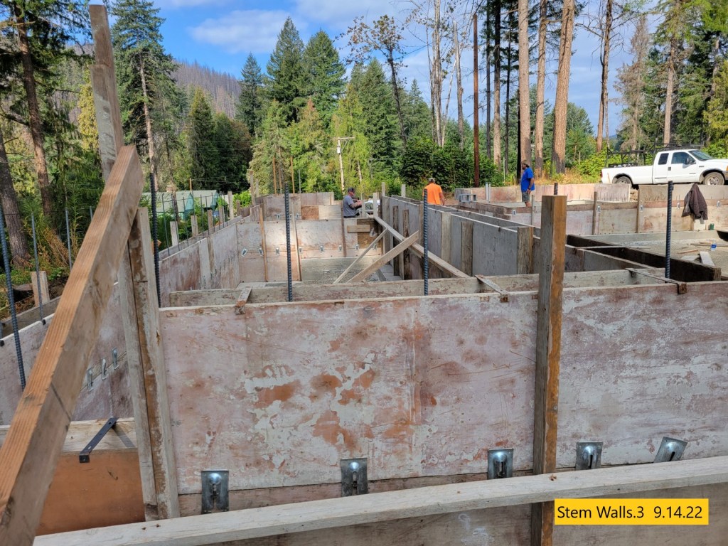 The forms for the concrete stem walls are almost complete. Inspection is called for Monday and concrete pour on Wed of next week.