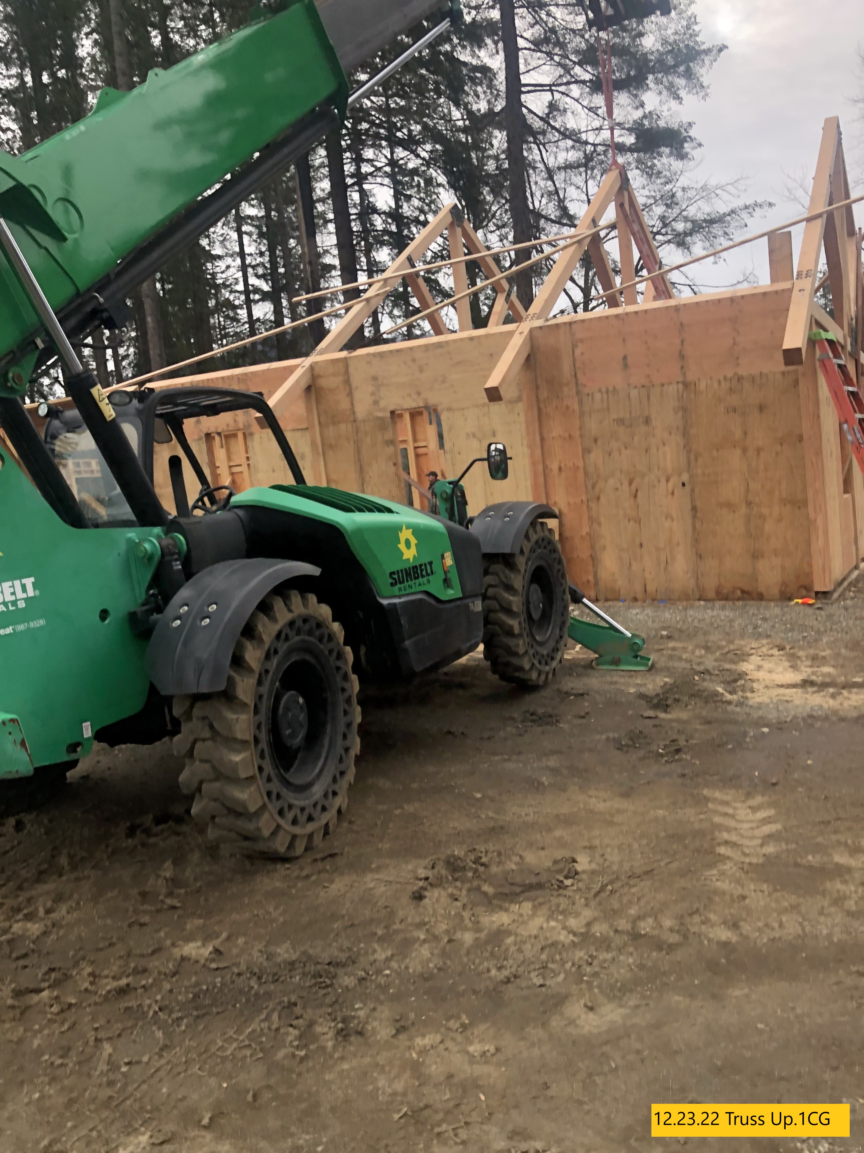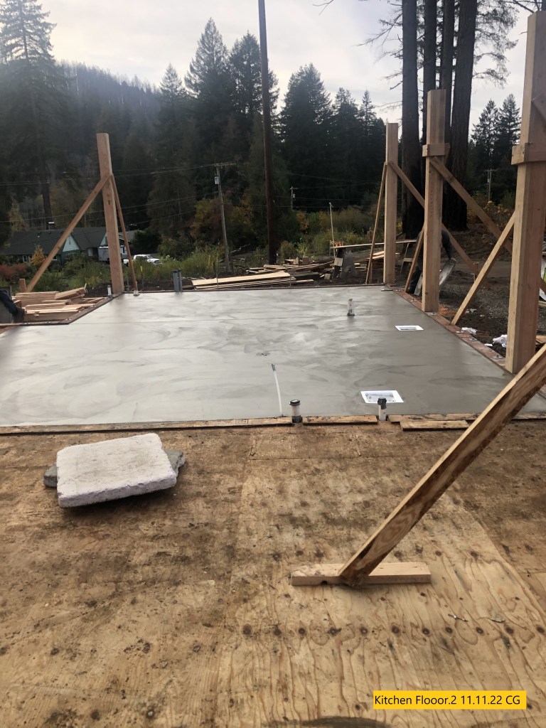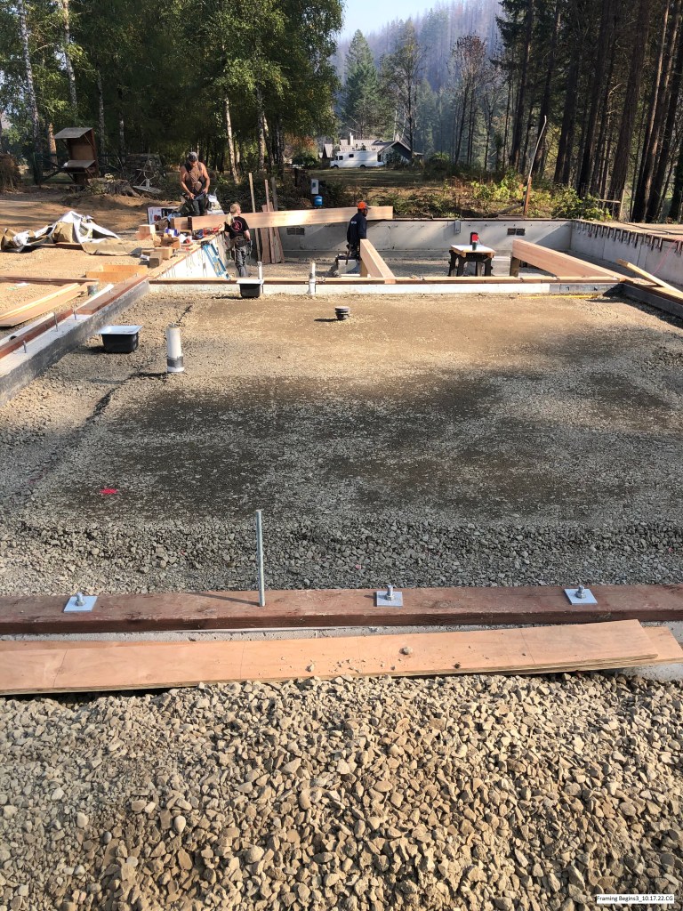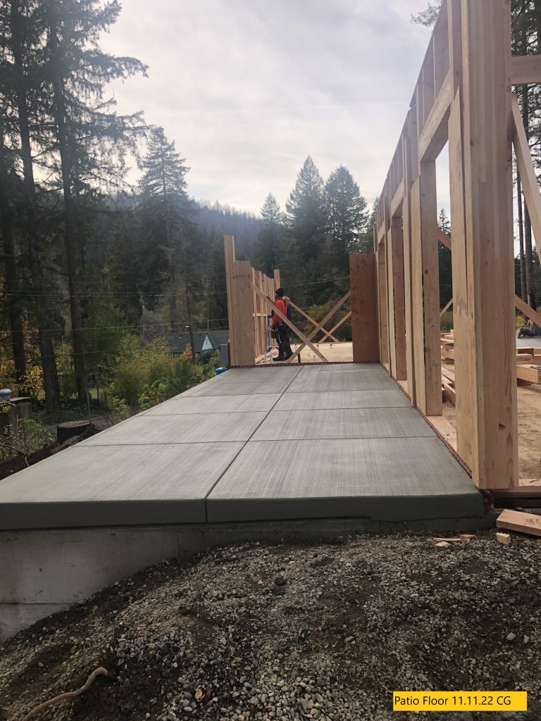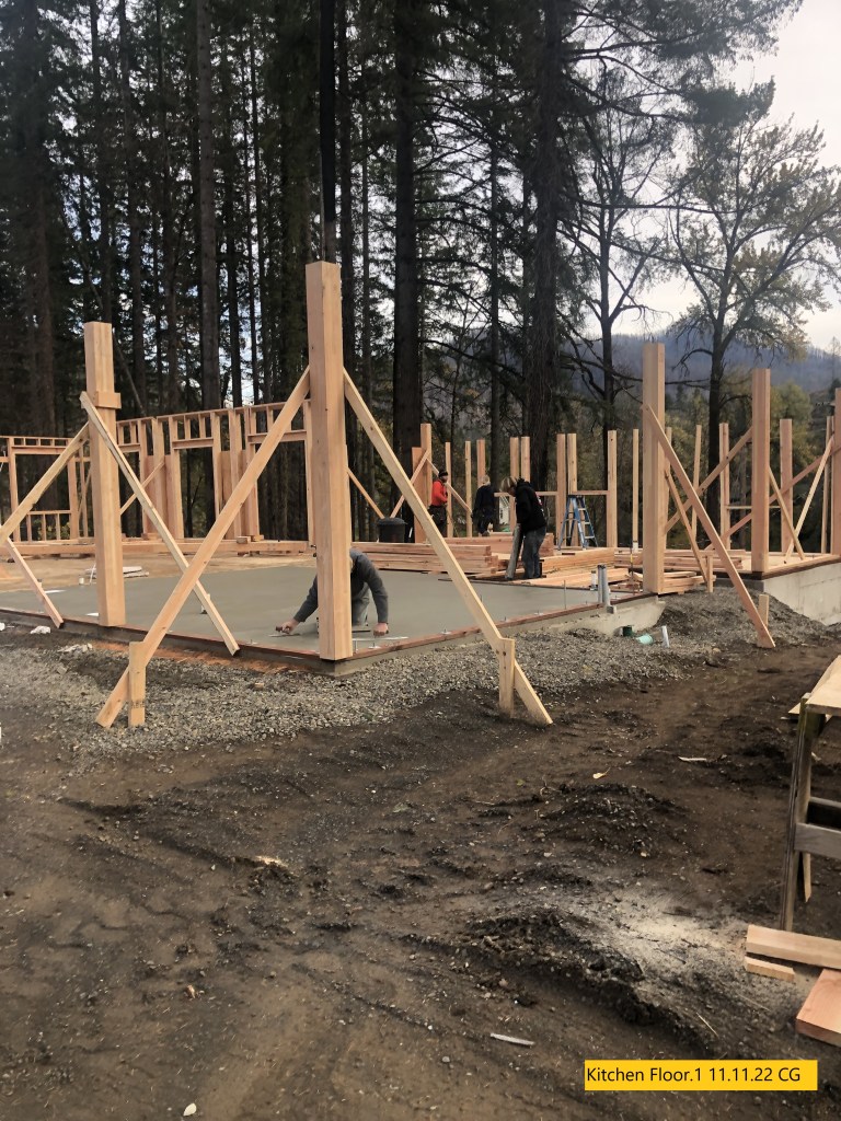 “The walls are going up, the concrete in the kitchen and back patio is poured and the trusses are being assembled. Very busy this week”