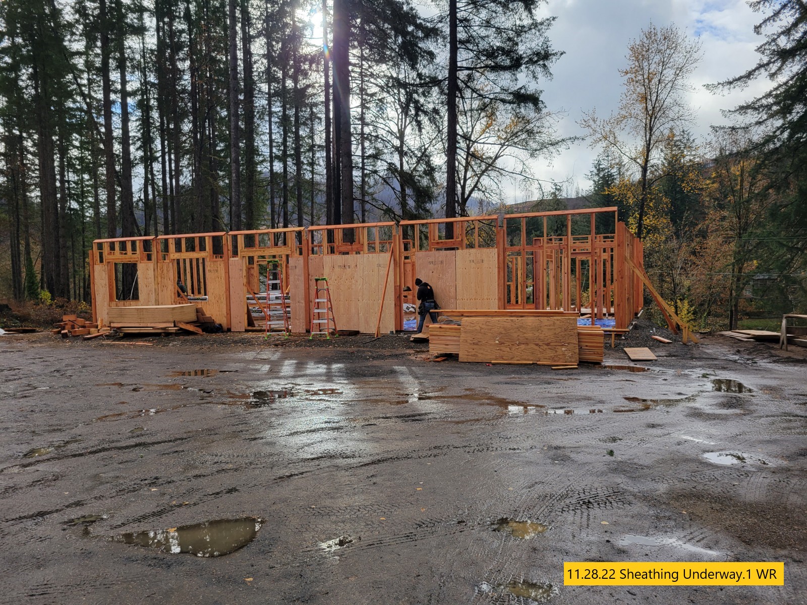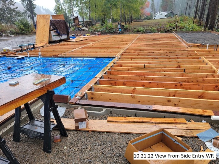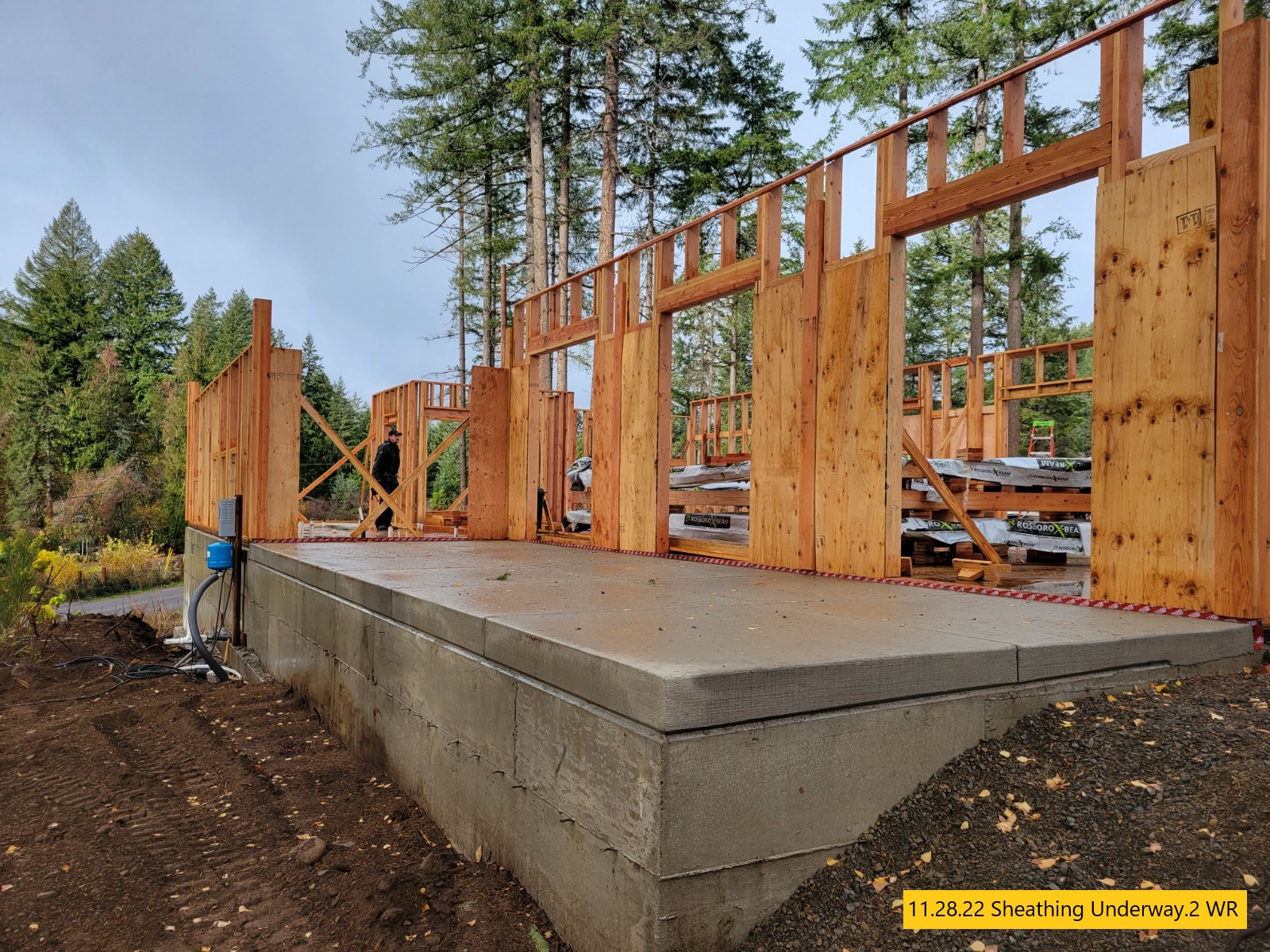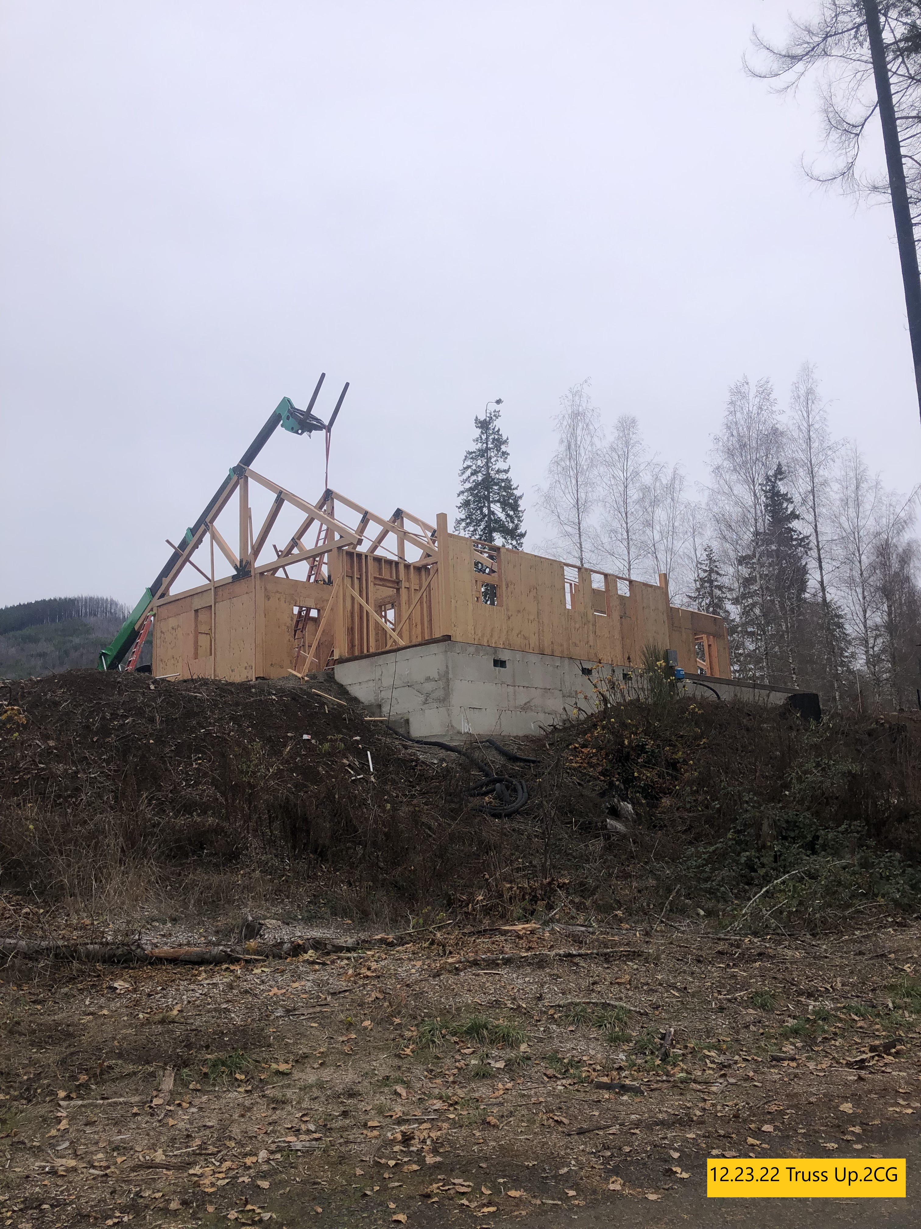 “The walls are going up, the concrete in the kitchen and back patio is poured and the trusses are being assembled. Very busy this week”