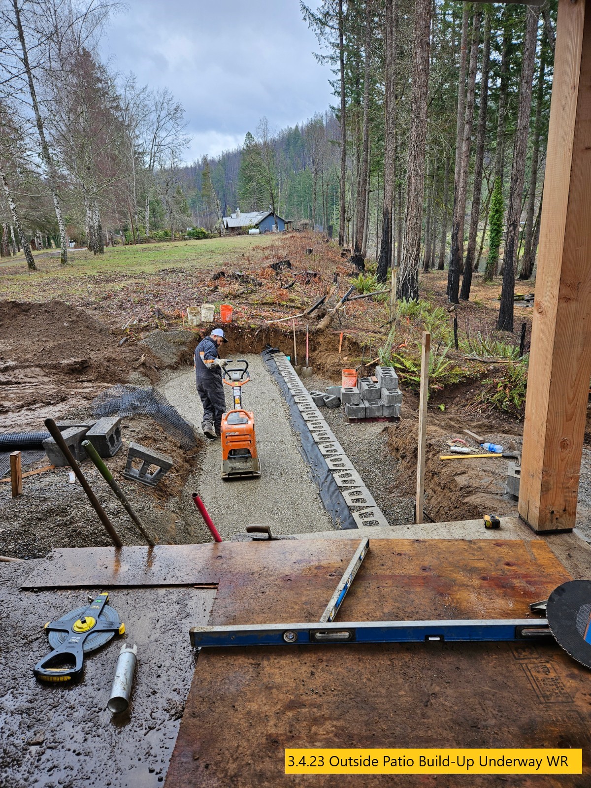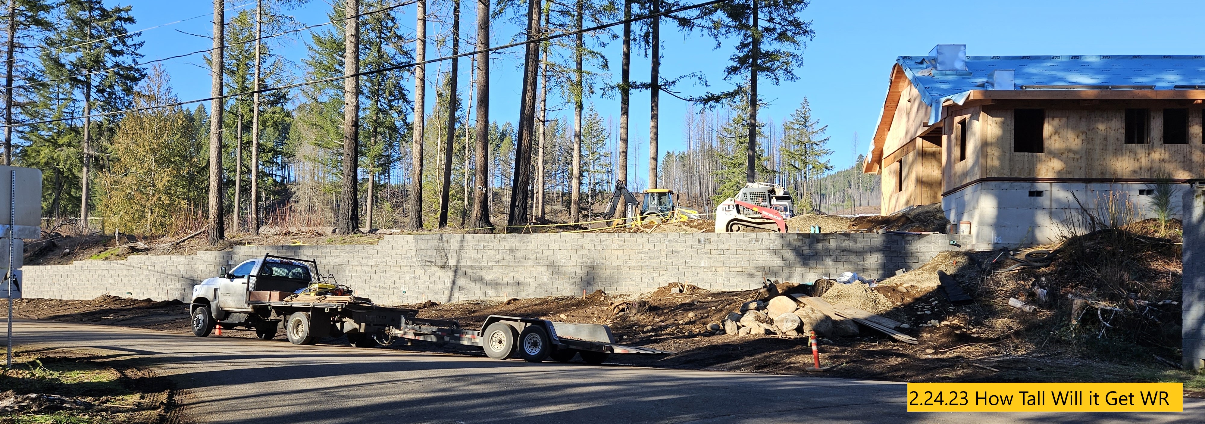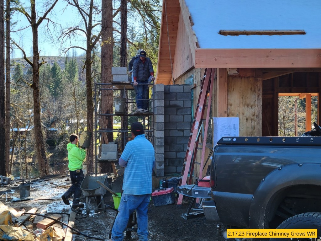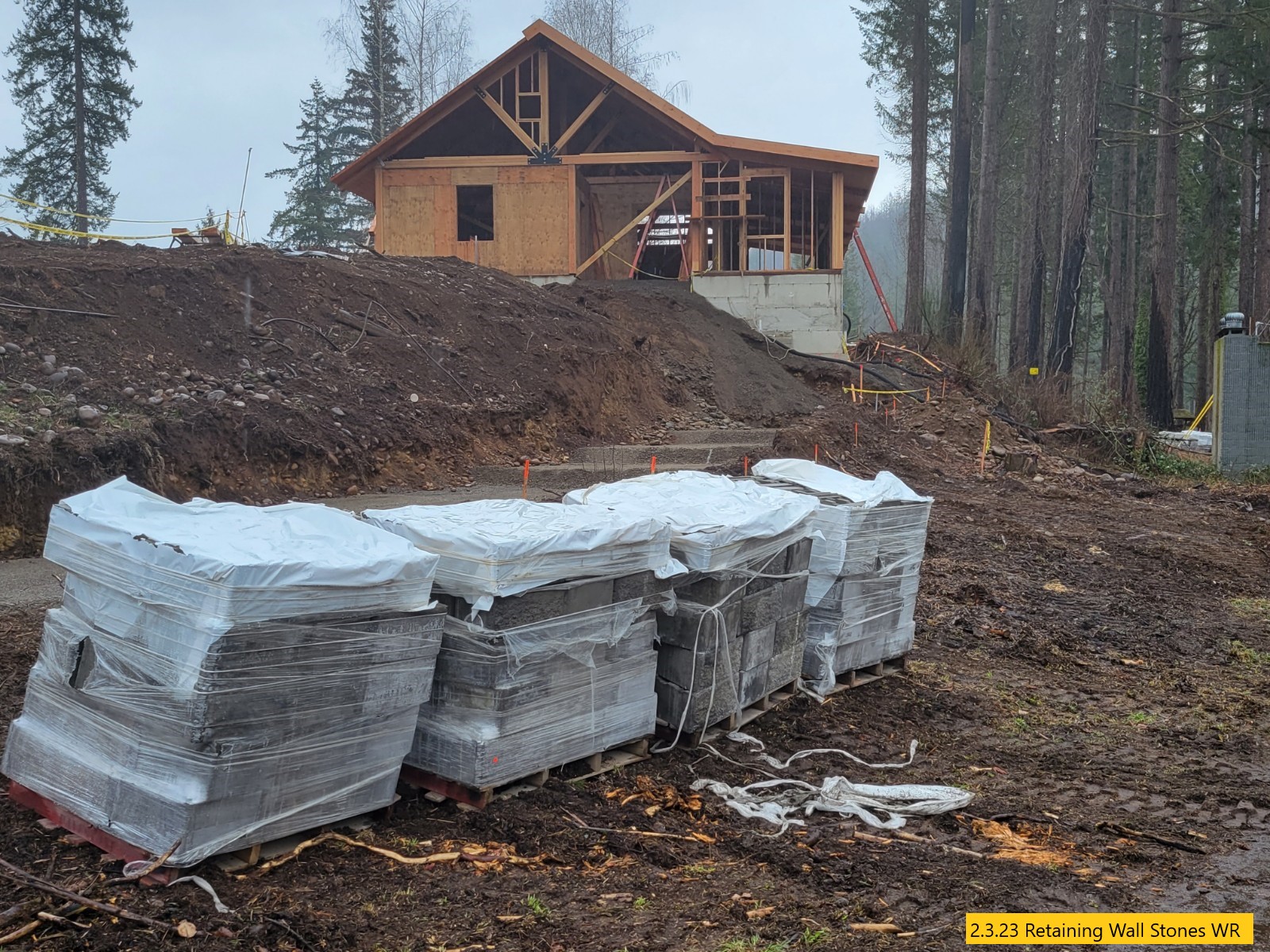 Retaining Wall Construction, Chimney Started, Carpentry Continues