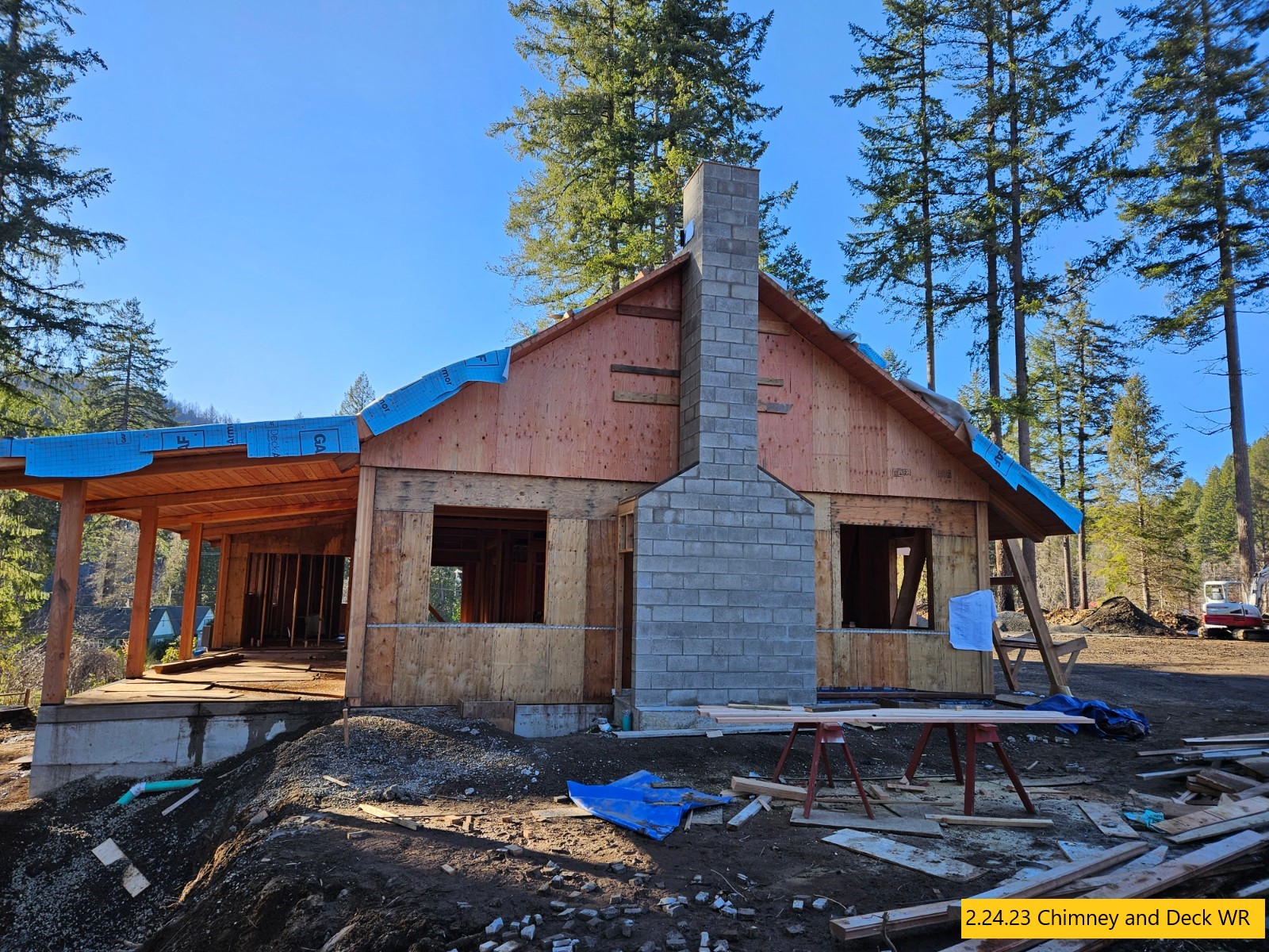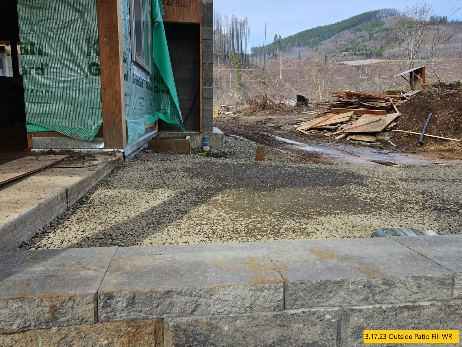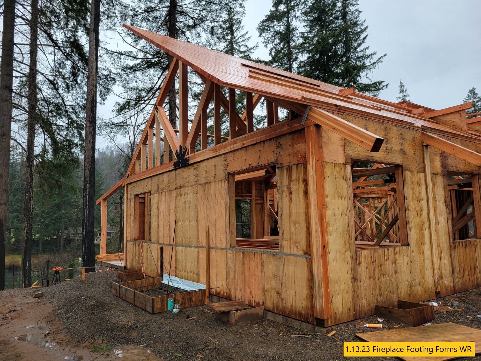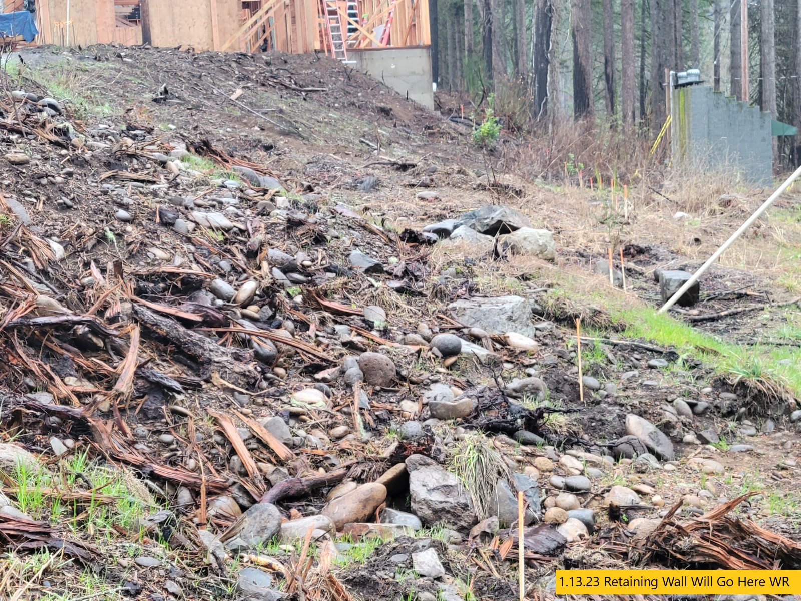 Retaining Wall Construction, Chimney Started, Carpentry Continues