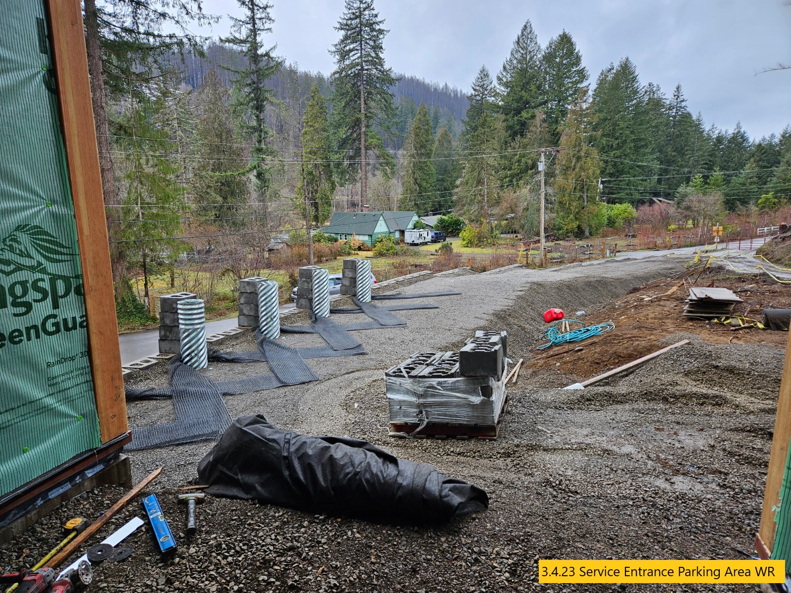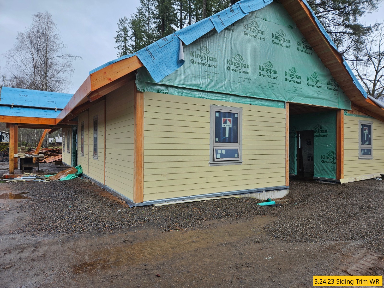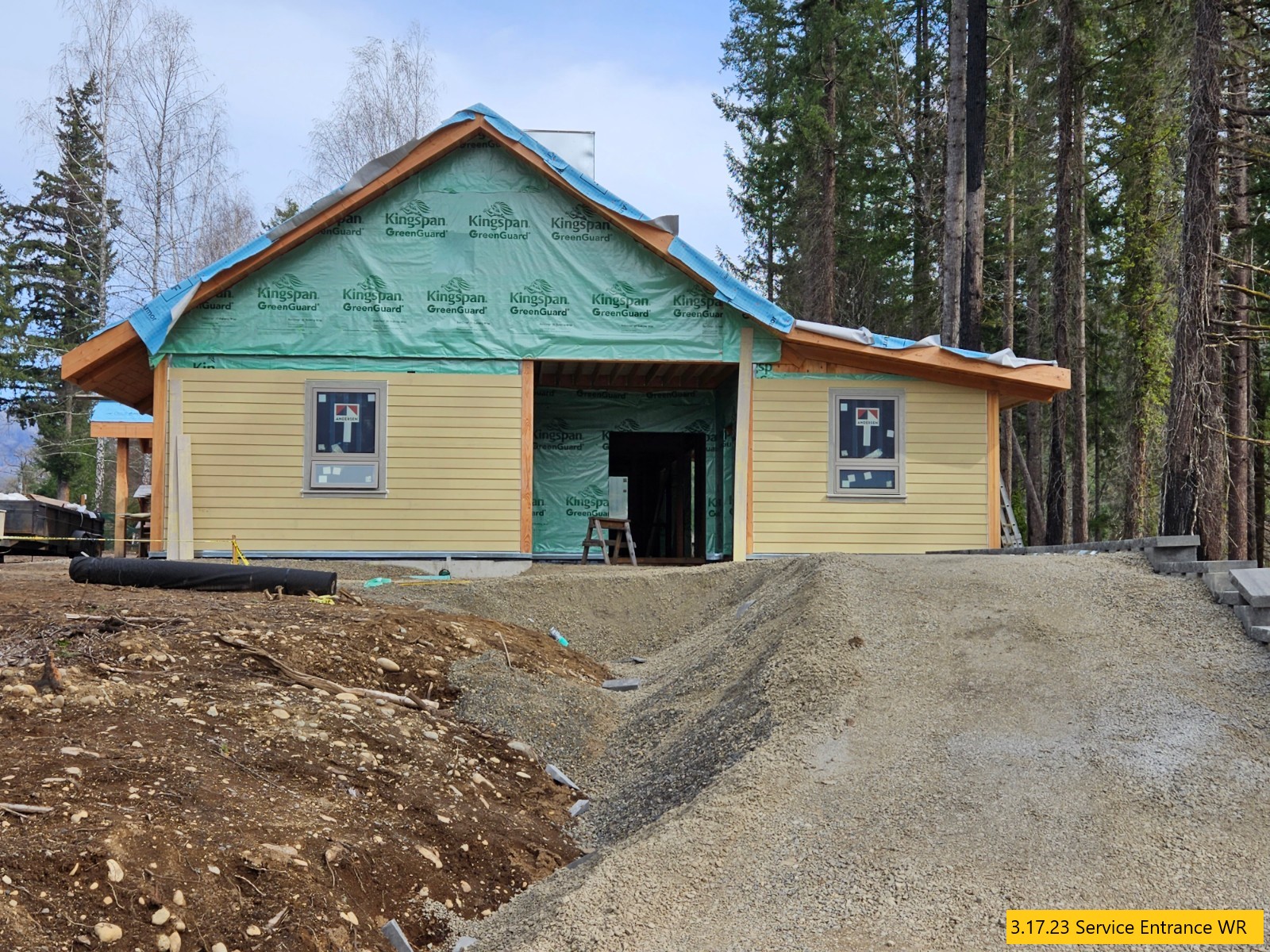 Driveway Staked, Siding Caulked, Custom Doors Being Built
