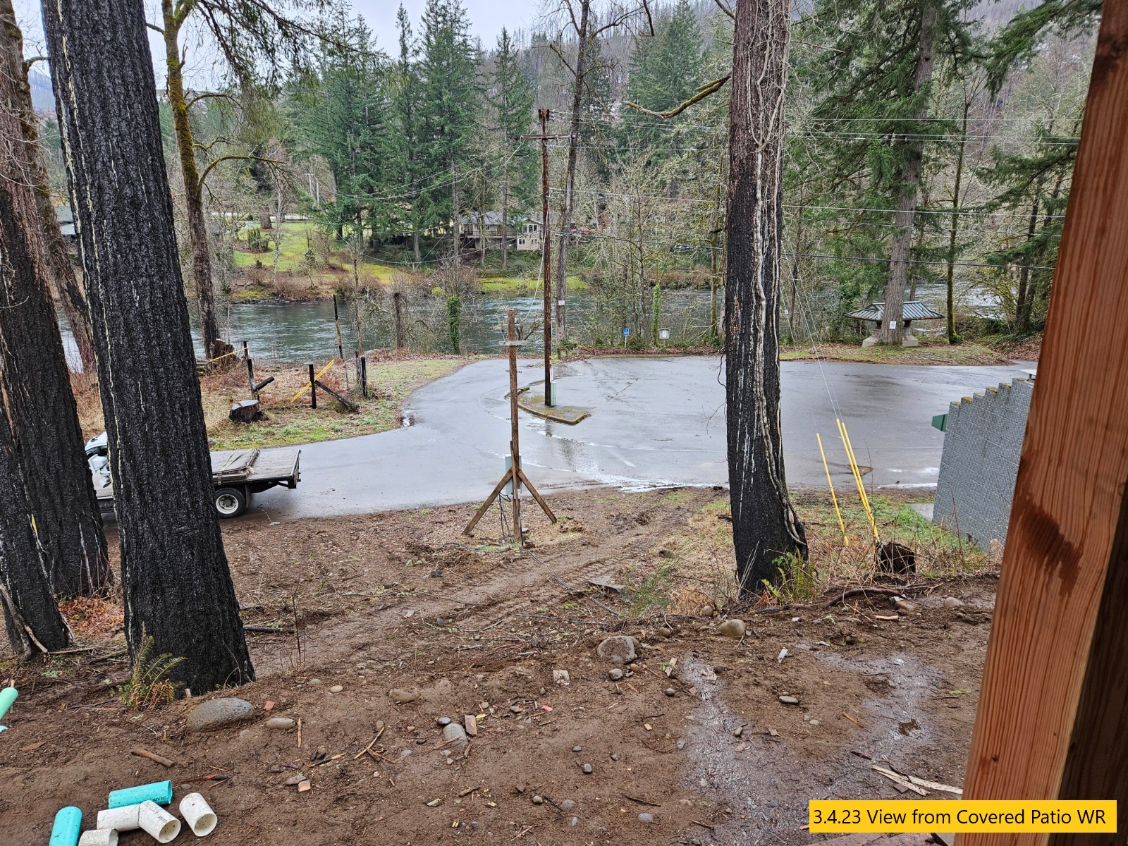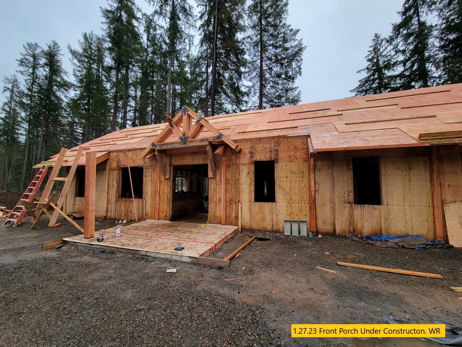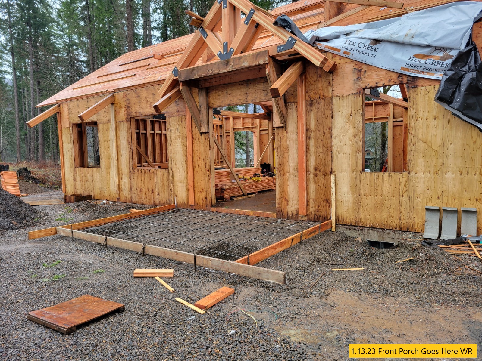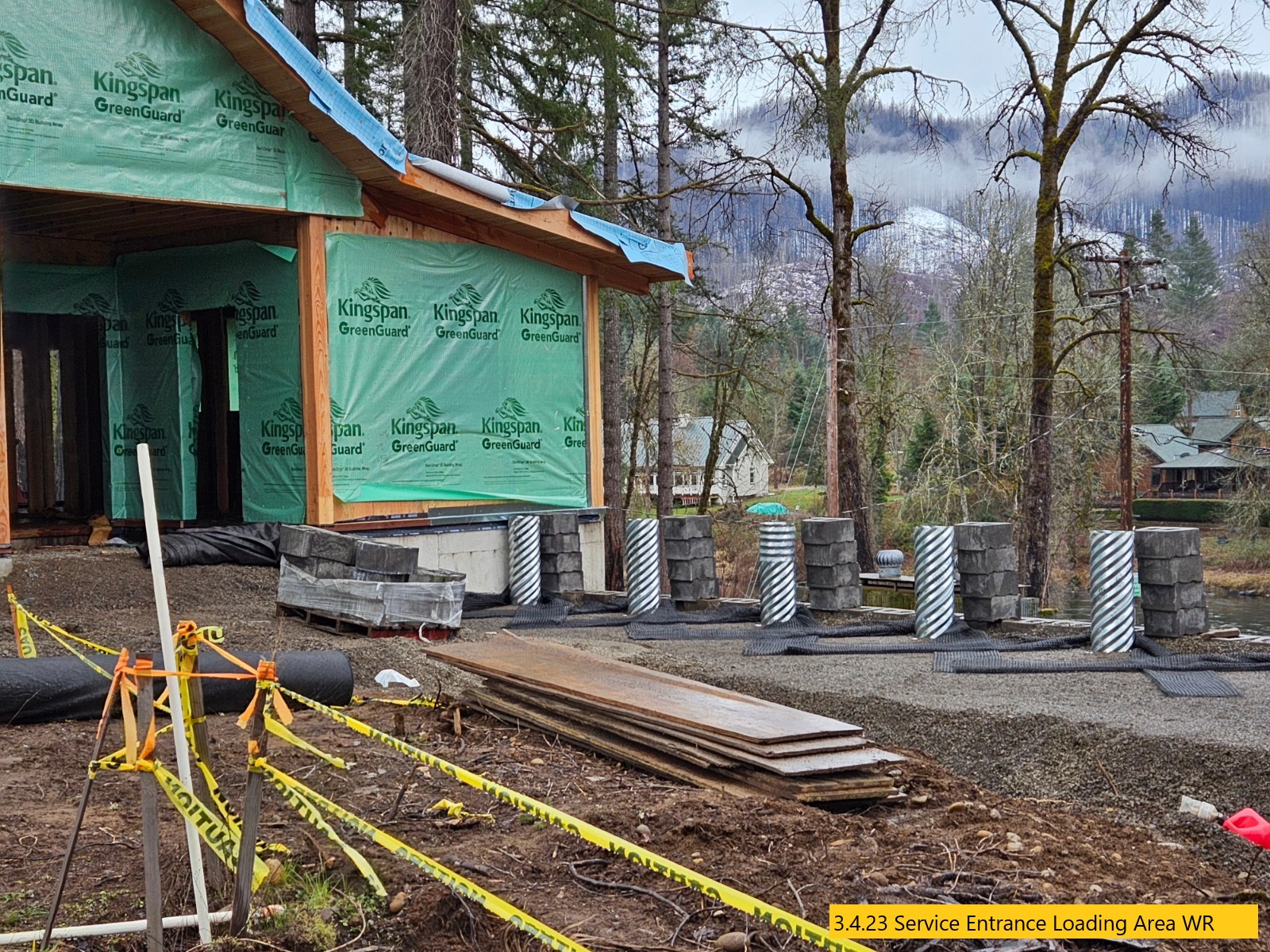 Driveway Staked, Siding Caulked, Custom Doors Being Built
