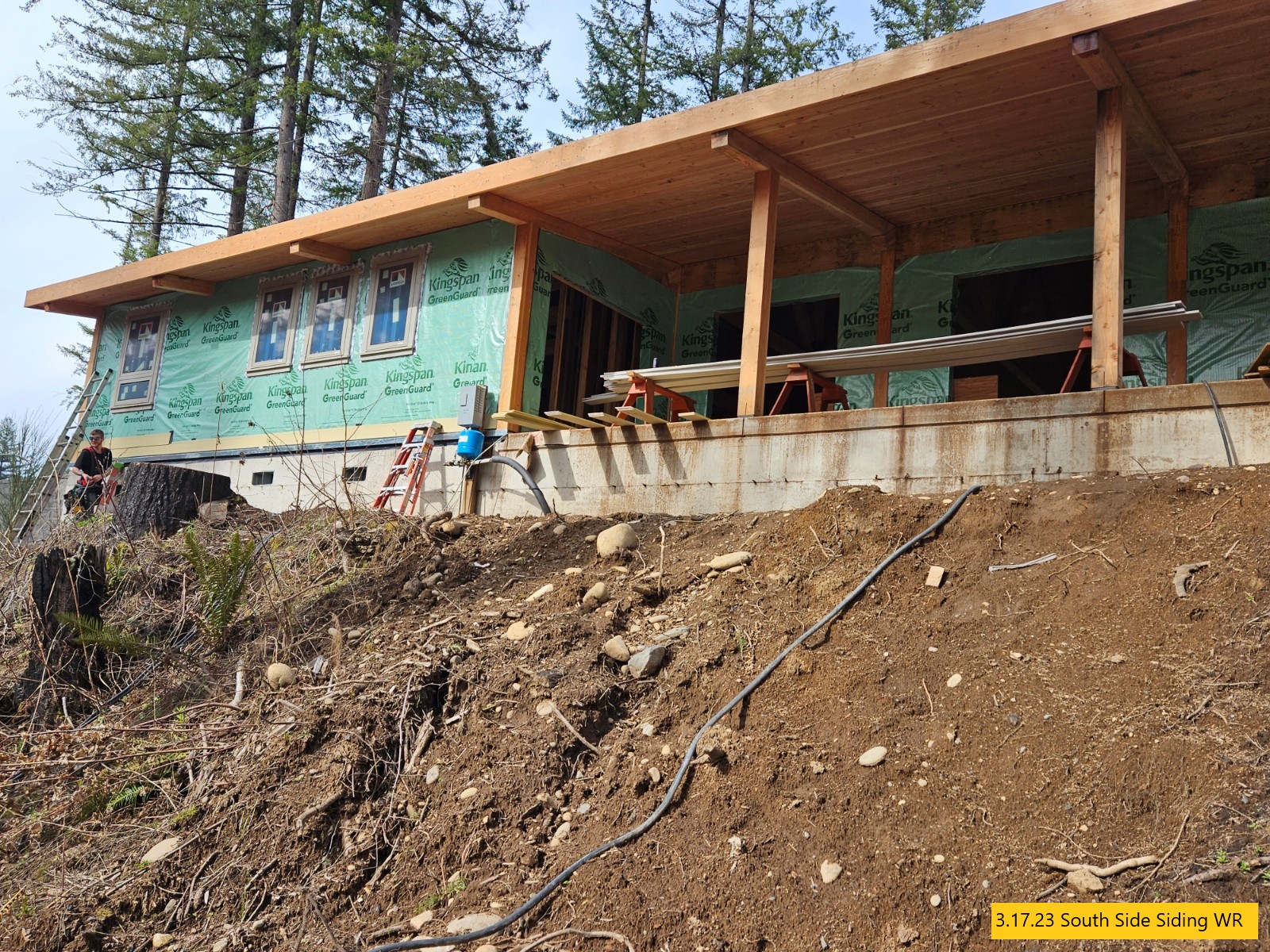 The exterior siding is nearing completion.