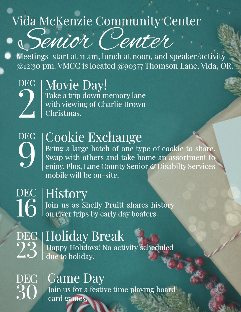 **The mobile van from Lane County Senior and Disability Services will also be on-site December 9.