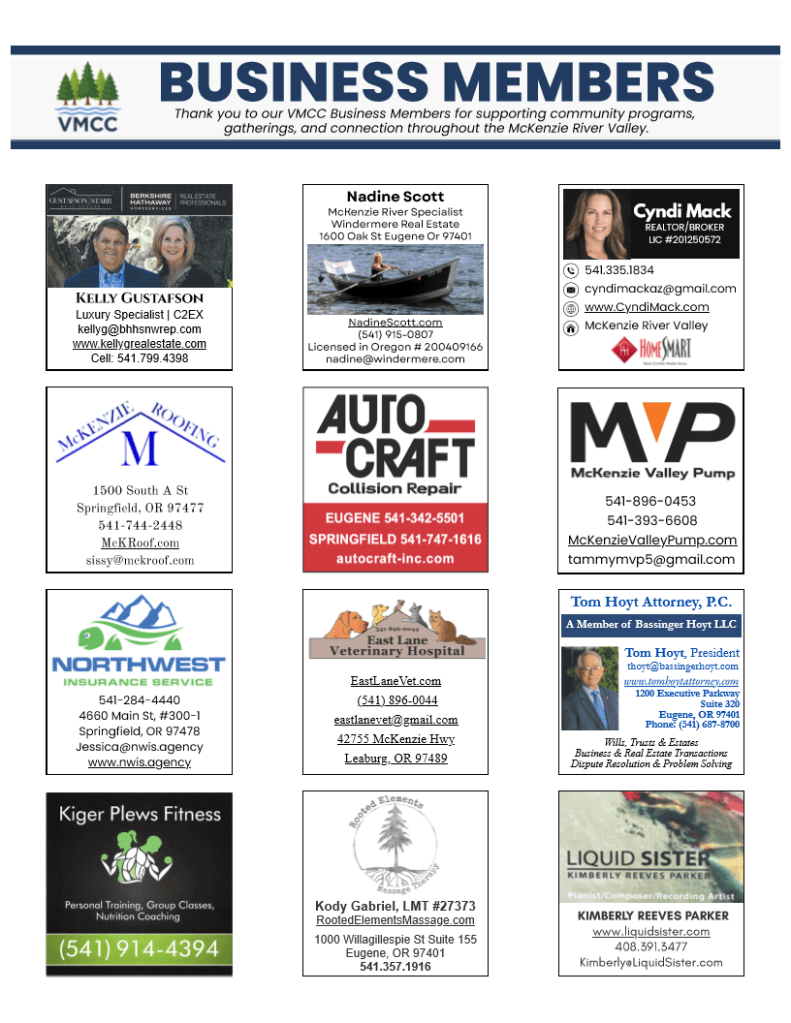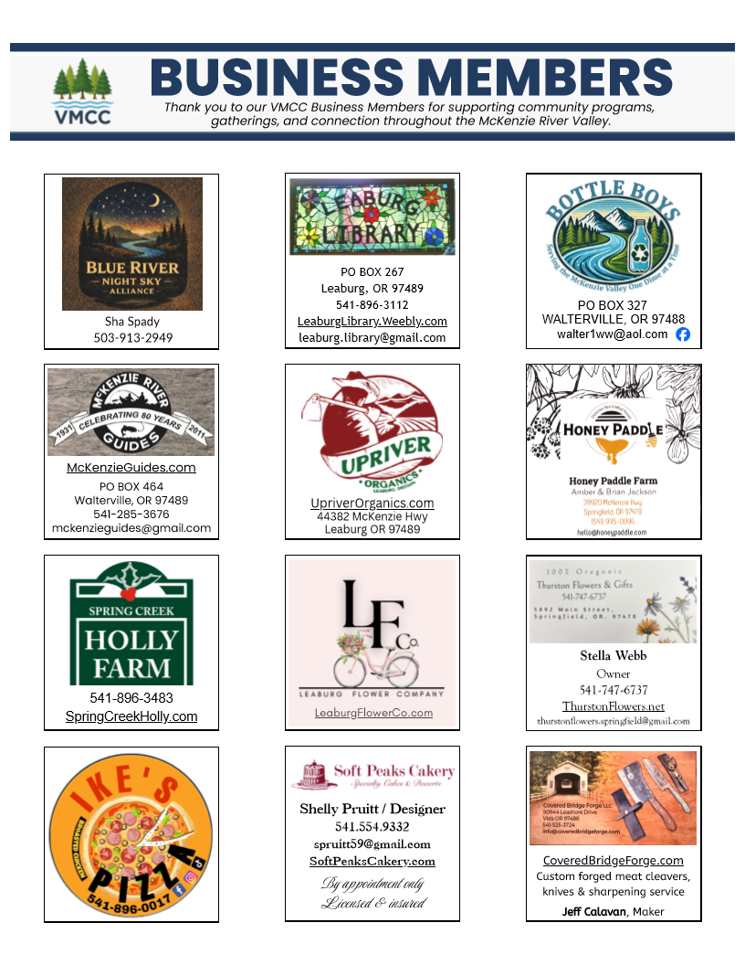 A non-profit community center located along the McKenzie River near Vida Oregon